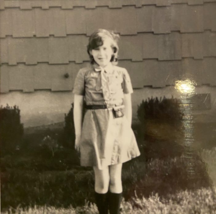 I’m in third grade and in love with two things. The first is Miss Moken, my fashion icon, who teaches in sleeveless shifts and heels. The second is my Brownie uniform. I get to wear it to school every Wednesday, which, in my mind, gives me an air of importance. I have after-school meetings to get to. I have badges to earn. I’m a Brownie.