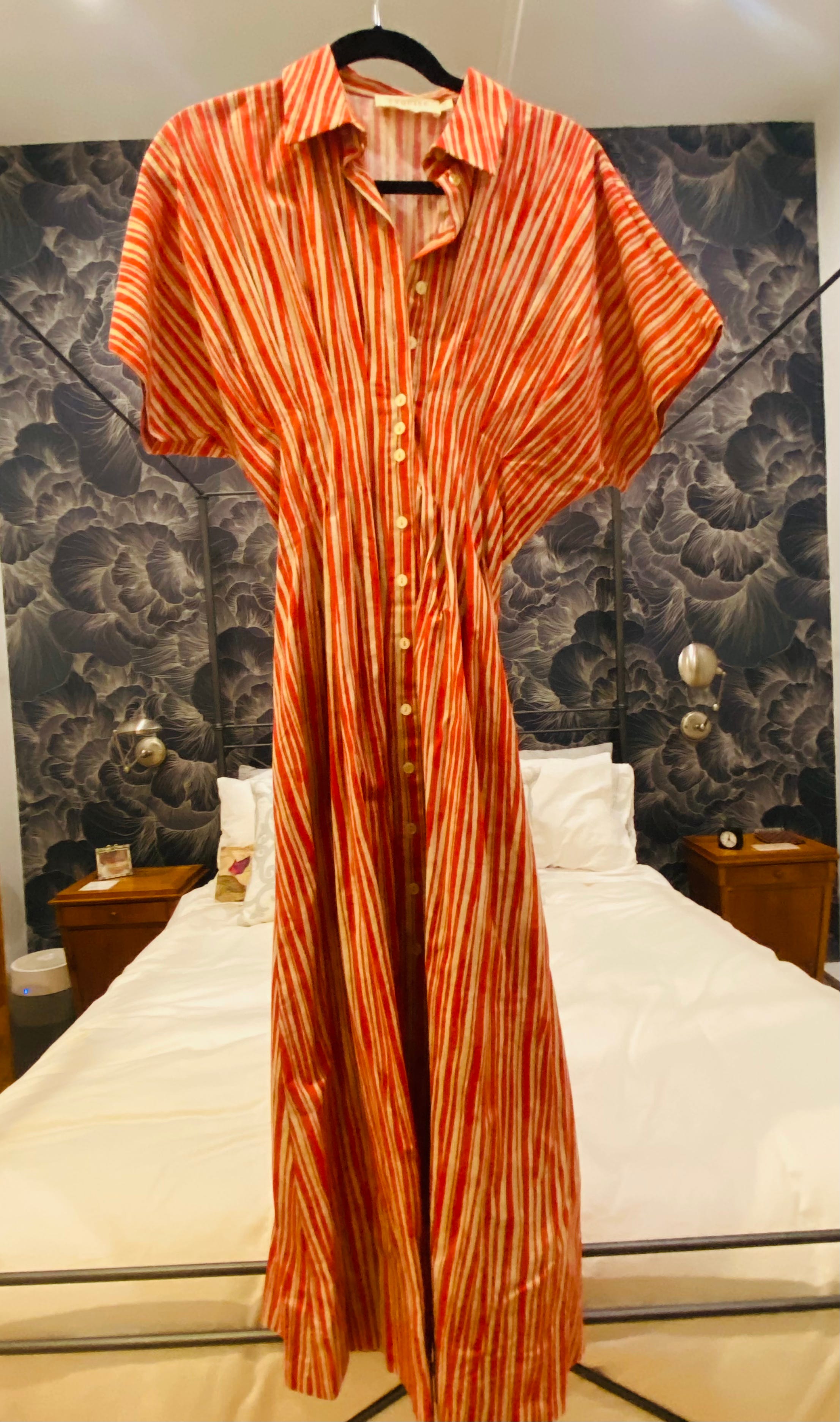 This pretty little lady of a dress volunteered itself. Why yes, my lovely striped friend! I’ll take you out for a spin! Let’s pair you with high espadrilles and be on our way! No, no, said my sobering voice. You don’t have high espadrilles any more because they hurt your feet. Remember? It was when you first suspected you might have something that rhymes with onions, but were in denial? You gave them to a niece with younger feet. Maybe this dress works with a low sandal? No! No, it does not. The proportions are wrong! Ugh! Why have a dress if you don’t have a shoe for it? Why? Why? I’m not just thinking “why, why,” I’m saying it. Spiraling. And while it’s not late, it’s no longer early.