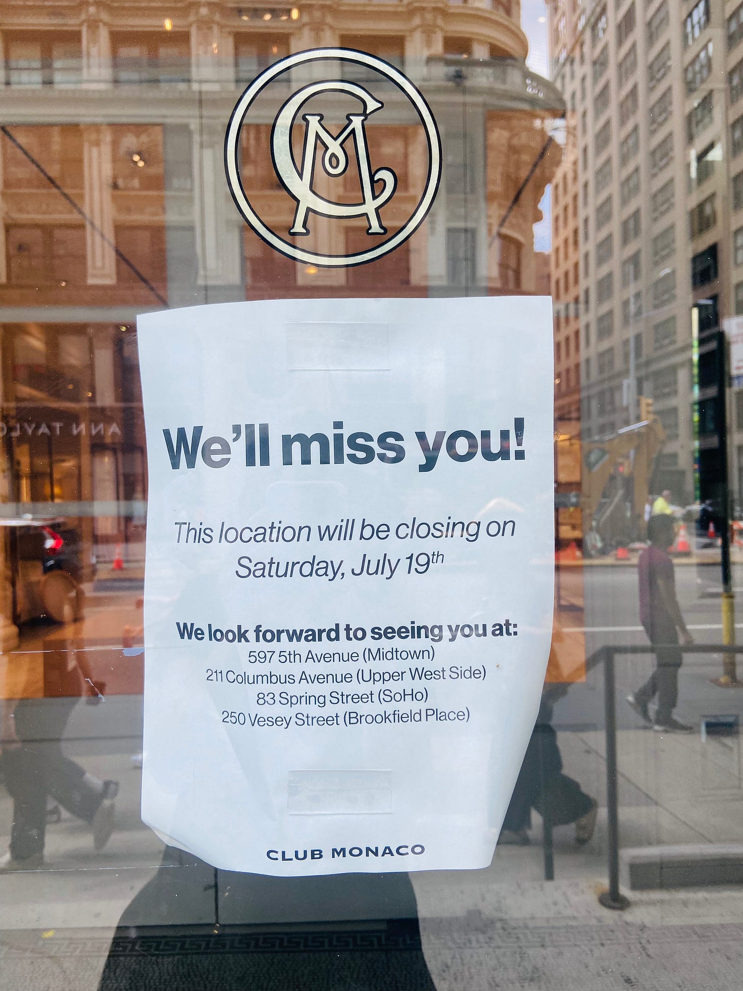 Club Monaco is closed and I’m sad.