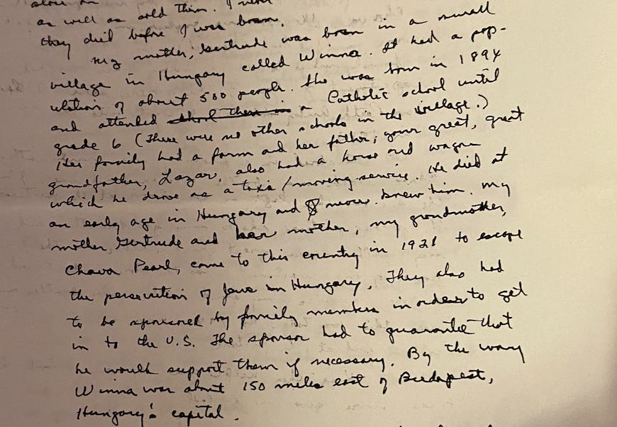 I re-read the part above recently and my eyes filled. Partly, because I love seeing my father’s handwriting. I pictured him taking pains to be accurate and informative - as a public school principal, I have no doubt he wanted his grandson to get an A. But he also wanted his grandson to appreciate where his family came from.