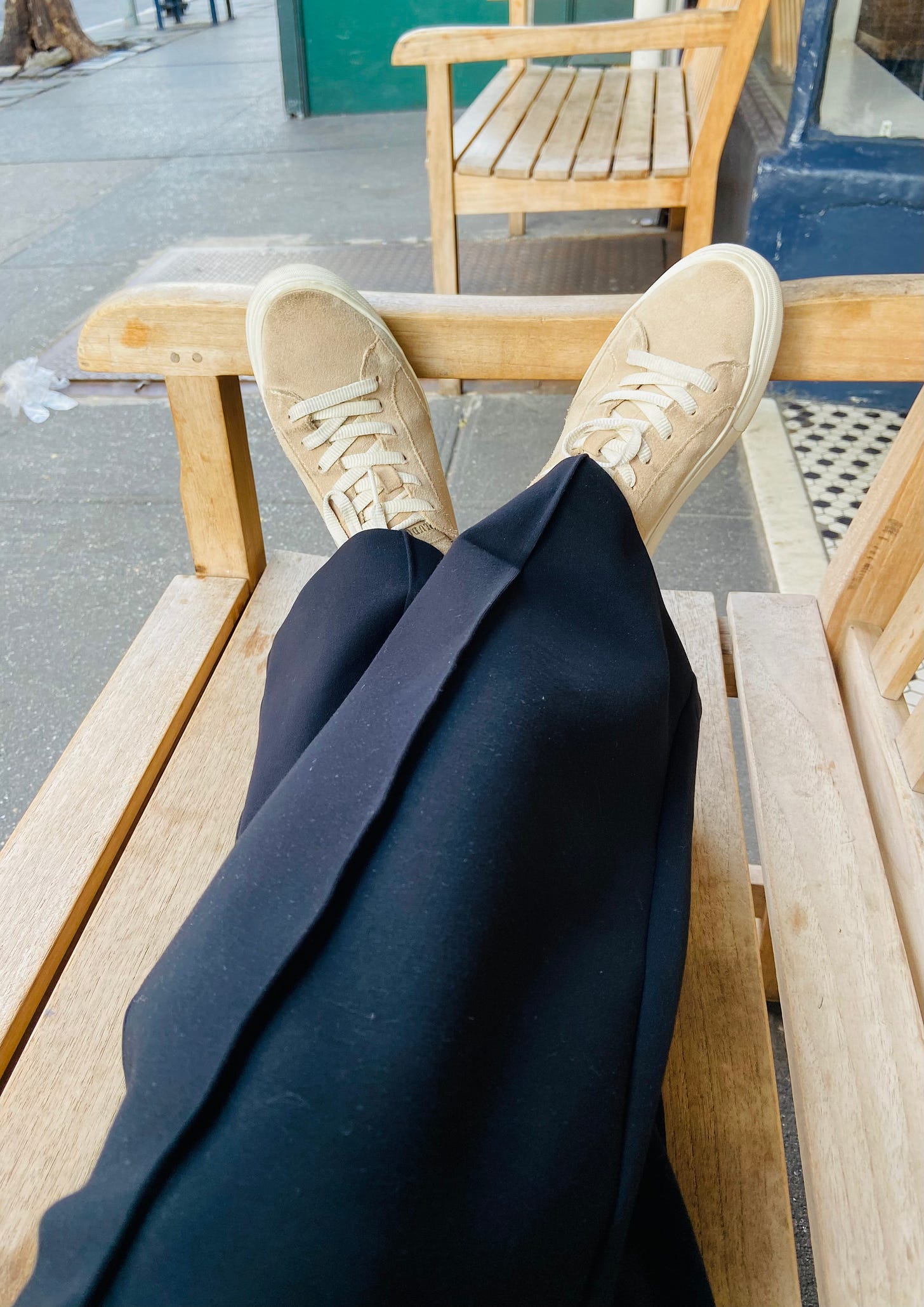 I grab my sneakers - a pair of Soludos I sometimes love and sometimes think are nerdy. I slip into my first lightweight coat in months. And there I am - on the sidewalk - saying “holy moly” out loud.