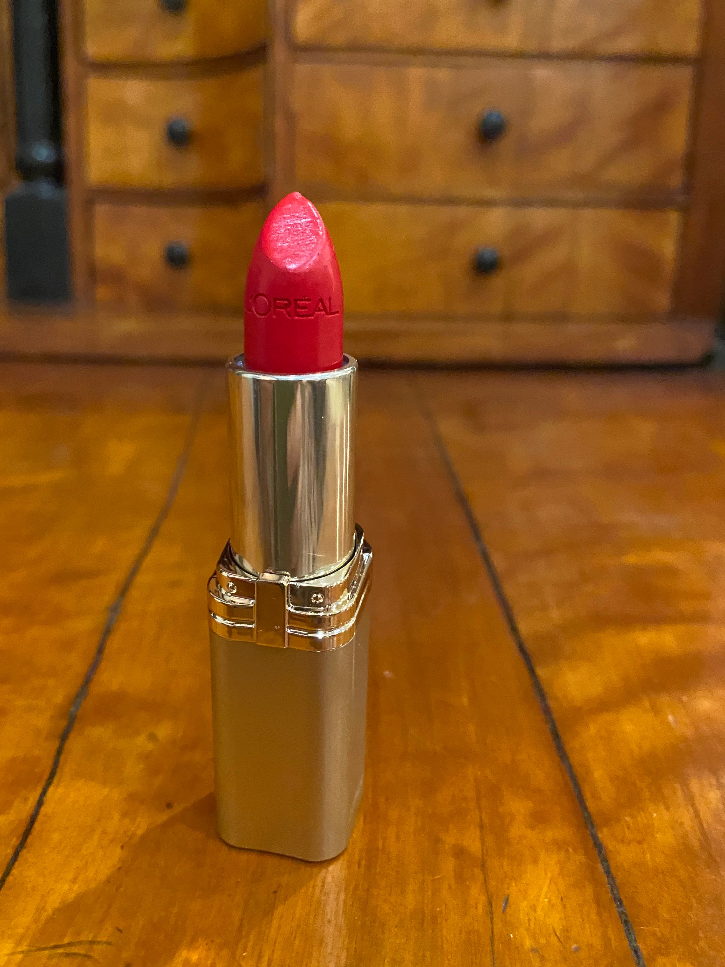 She hands me a square silver lipstick tube.