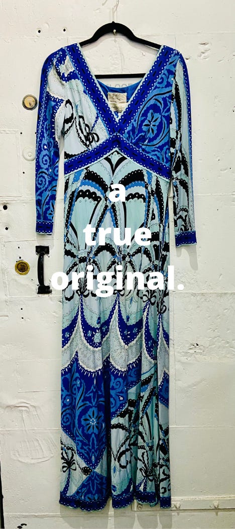 "Have you seen my Pucci?" she asked. I had seen it many times, but only in pictures. She'd worn it to Philip's Bar Mitzvah and looked ravishing - by far, the star of the photo album. She rummaged toward the back of the rack, grunting a bit, and emerged with a hanger wrapped in dry-cleaner's tissue paper and plastic.